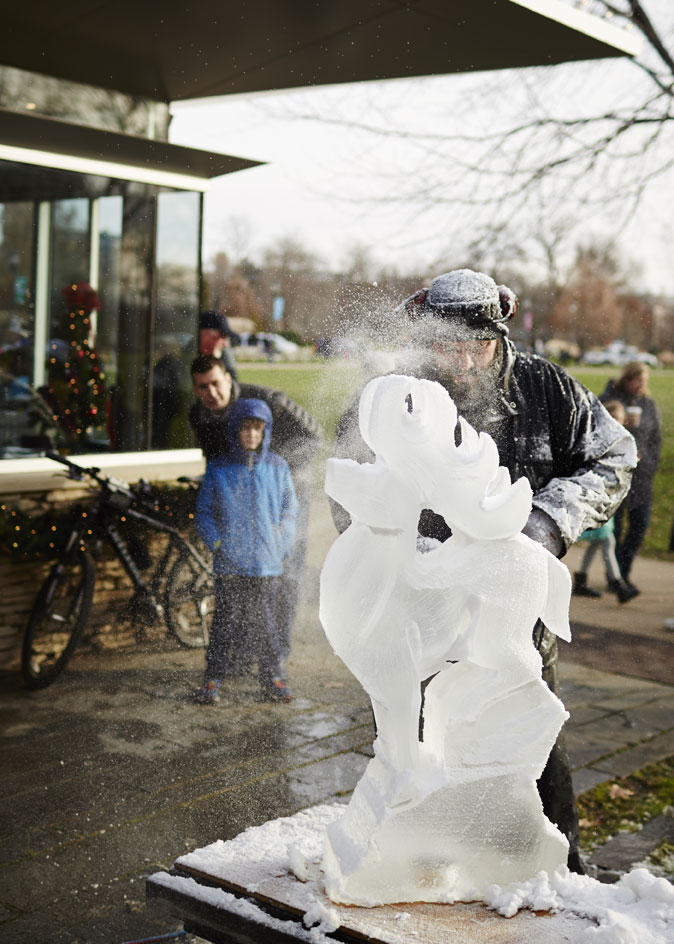 Ice carving demonstrations take place throughout the weekend at Holiday CircleFest in University Circle. Downie Photography / University Circle Inc.