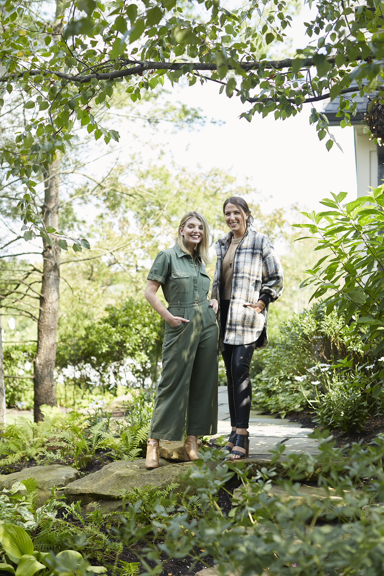 Olivia wears a utility jumpsuit in army green by HarperSage from LADDER. Brown boots from Amazon are her own.
