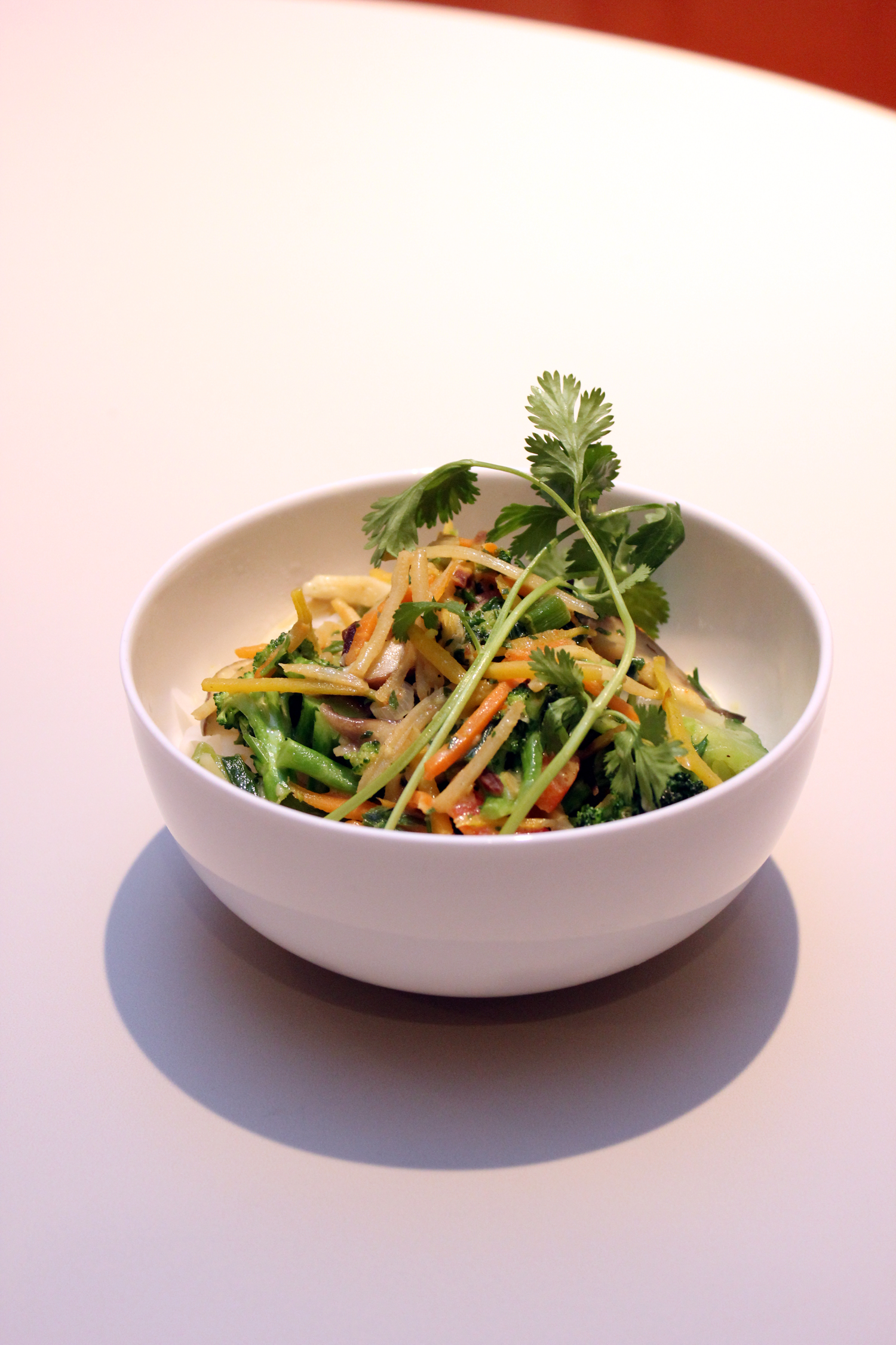 Exploration’s vegan coconut curry rice noodles, with rice noodles, coconut curry sauce, carrots, broccoli, peppers, garlic, scallions and cilantro.