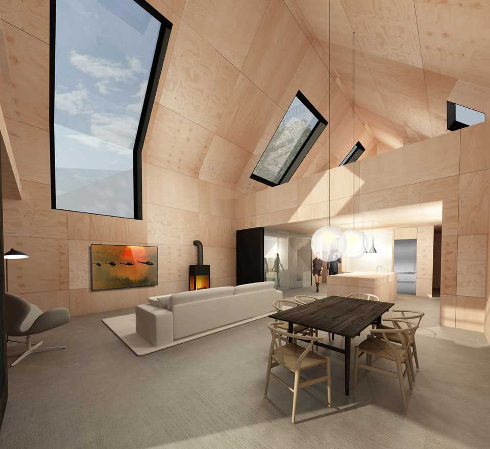 Open spaces, high ceilings and skylights are among the features in this Donnelly Eber rendering of what the inside of a new home in the southern Moreland neighborhood might look like.