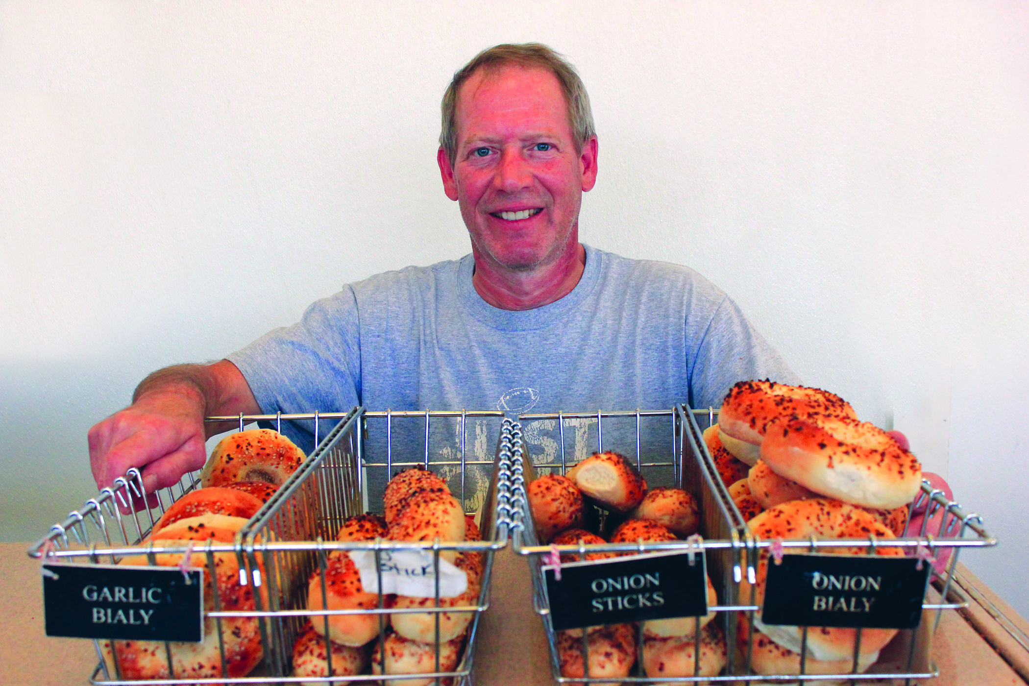 IMG_2637 Published September 6, 2016 at 2100 × 1400 in Rolls with holes ← Previous Bialy’s Bagels owner Mark Osolin stands behind his finished products, while other bagels rest in various stages of production, from baking in the oven to cooling on the pan. Share this:Click to share on Twitter (Opens in new window)Click to share on Facebook (Opens in new window)Click to share on Pinterest (Opens in new window)Click to email a link to a friend (Opens in new window)Click to print (Opens in new window)