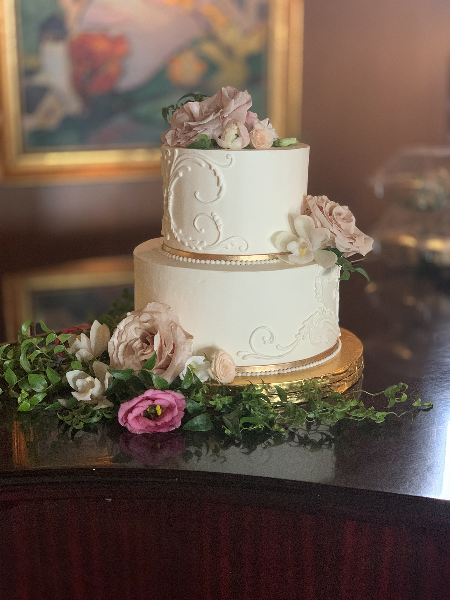 JSW22_Luna2 Published October 12, 2022 at 1500 × 2000 in Wedding cake trends ← Previous Next → Two tiered, white frosted cake with rose gold borders and piping and floral accents. Photo / Luna Bakery Share this:Click to share on Twitter (Opens in new window)Click to share on Facebook (Opens in new window)Click to share on Pinterest (Opens in new window)Click to email a link to a friend (Opens in new window)Click to print (Opens in new window)