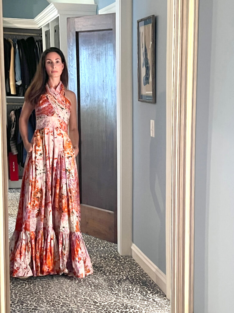 A summer gown I bought at Liberty London by an emerging designer. It was part of a capsule collection, and I fell in love with the incredible fabric and the statement it makes. I had nowhere to wear it when I bought it, but recently wore it to a family wedding in Sun Valley – it felt like the perfect debut.