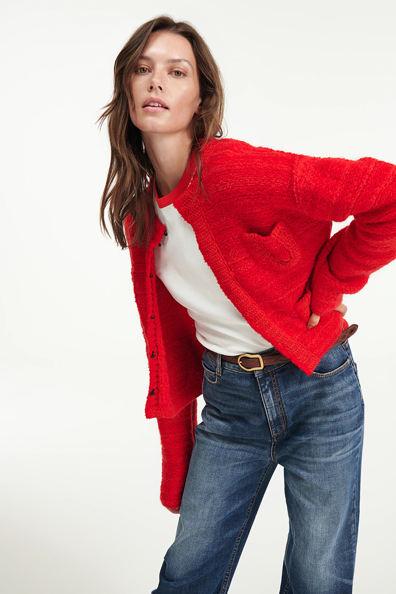 5 Published November 17, 2022 at 800 × 1200 in Winter 2022 fashion trends ← Previous Next → Red knit cardigan paired with a white and red ringer-style T-shirt, blue jeans and brown leather belt by Dorothee Schumacher. Photo / Dorothee Schumacher. Share this:Click to share on Twitter (Opens in new window)Click to share on Facebook (Opens in new window)Click to share on Pinterest (Opens in new window)Click to email a link to a friend (Opens in new window)Click to print (Opens in new window)